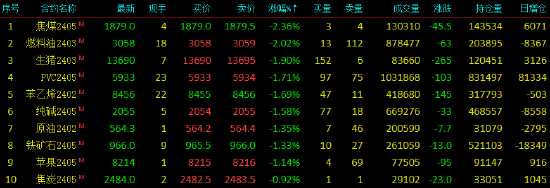 市场简评商品市场连续三天被空方急速下杀,多方避让市场重心重回震荡泥潭,今日全天资金流入流出基本持平,市场下行恐慌未减。上涨品种方面,红枣、尿素涨幅靠前,但力度不够,谨慎观察;而下跌品种方面,集运欧线跌