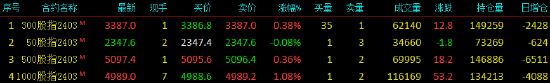 2024年2月20日,股指期货多数上涨,沪深300股指期货(IF)主力合约涨0.38%,上证50股指期货(IH)主力合约跌0.08%,中证500股指期货(IC)主力合约涨0.36%,中证1000股指期货(IM)主力合约涨1.08%。A股午后震荡回升