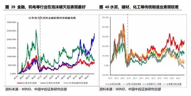 台湾股市泡沫始于1985年 7 月,结束于 1990 年 2 月,期间指数从 636点上涨至 12495 点,涨幅高达 19.65 倍;之后在内外流动性紧缩、出口增速放缓、日本股市崩盘等因素作用下泡沫开始破裂,台湾指数亍 8 个月之内狂