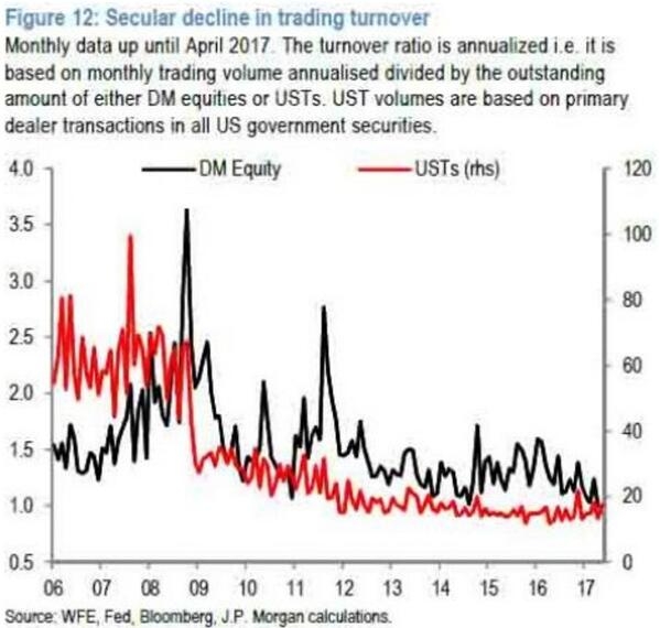 有没有想过这样一个问题:在所有诸如gamma值、vega值、CTA、风险平价、vol-neutral、央行干预、VIX ETF等修辞和常数背后,是否有一个共同点能够解释为什么尽管近年来政治不确定性激增,特别是在美国当选之后……图1