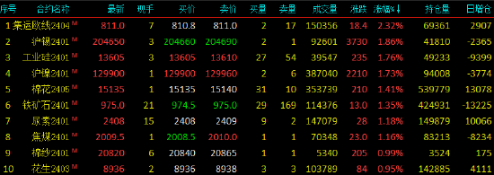 2023年12月6日,期市早盘收盘,国内期货主力合约涨跌不一,集运指数(欧线)涨超2%,沪锡、沪镍、工业硅涨近2%。跌幅方面,碳酸锂跌超5%,棕榈油跌超3%,菜籽油、白糖跌超2%。