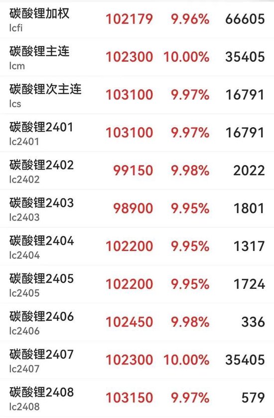 碳酸锂期货全部合约均触及涨停
