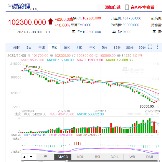来源中国基金报记者文夕原标题刚刚,全线涨停!逼空大战来了?业内发声碳酸锂期货近期集体创下新低后,又连续全线涨停,行情堪称疯狂。12月8日早盘,碳酸锂期货合约LC2401-LC2411再度集体涨停,在连续多日单边下跌行