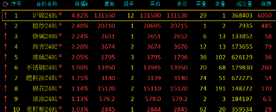 能源化工类原油:周二油价有所反弹,其中WTI1月合约收盘上涨1.55美元至76.41美元/桶,涨幅2.07%。布伦特1月合约收盘上涨1.70美元至81.68美元/桶,涨幅2.13%。SC2401以582.5元/桶收盘,上涨9.8元/桶,涨幅