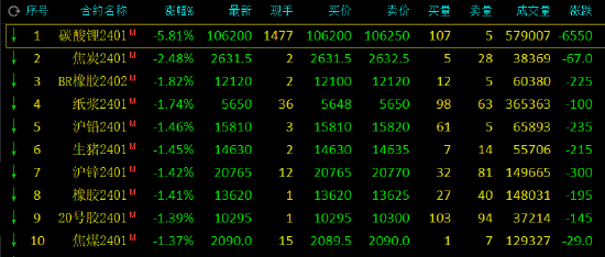 收评:国内期货主力合约大面积飘绿,碳酸锂封跌停板