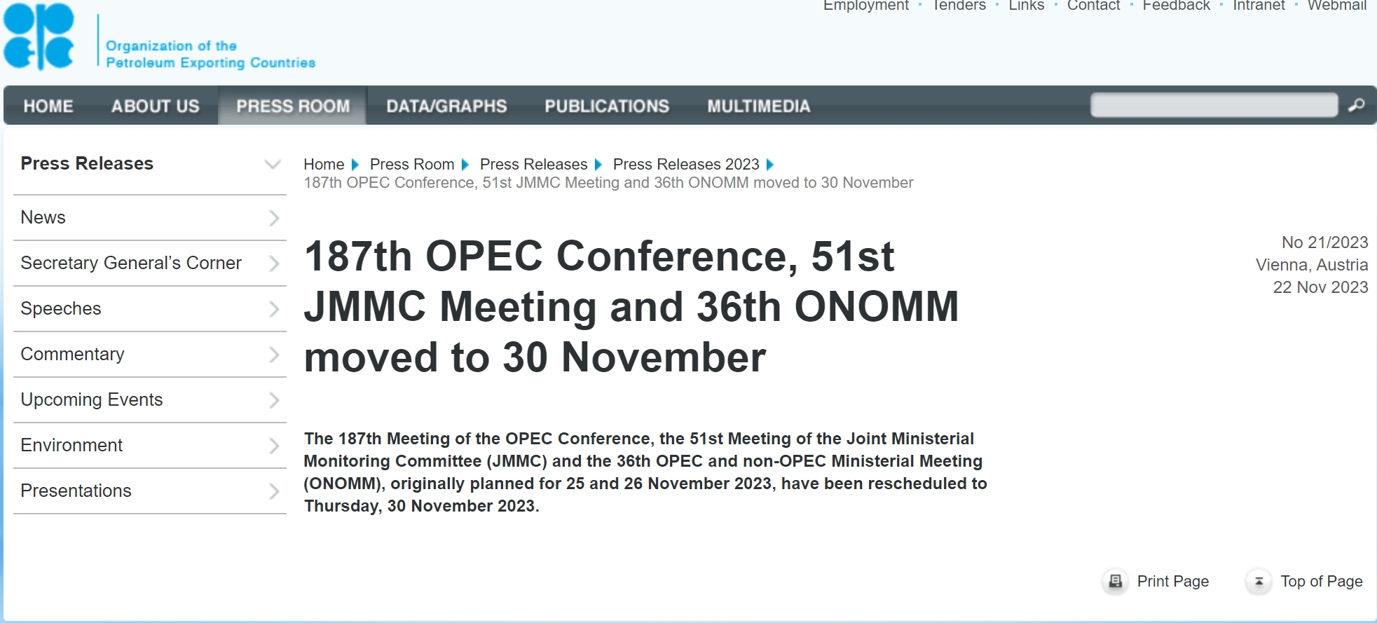 OPEC+称推迟的会议将按原定时间11月30日在线上举行