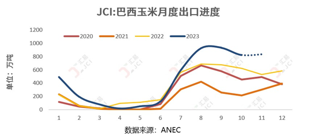 来源:中华粮网本周,中国海关最新统计数据出炉,10月中国进口玉米总量达到204万吨,其中,巴西玉米180万吨成为绝对主力。与此同时,USDA预测2023/24年度巴西玉米出口量达到5500万吨,低于2022/23年度5700万吨,但仍