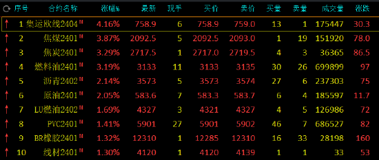 收评:集运指数(欧线)涨超4%,焦煤等涨超4%,花生跌超2%