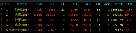 早盘收盘,国内期货主力合约互有涨跌。纯碱涨超7%,焦煤涨超6%,沪银涨超4%,焦炭、集运指数(欧线)涨超2%。跌幅方面,碳酸锂跌超6%,生猪、沪镍跌超4%,苹果、低硫燃料油(LU)、豆二跌超2%。机构观点:短期供需层