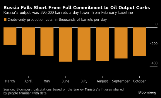 俄罗斯10月份的原油产量仍高于承诺的产量限额