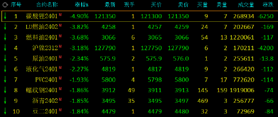 午评:碳酸锂跌近5%,燃料油等跌超3%