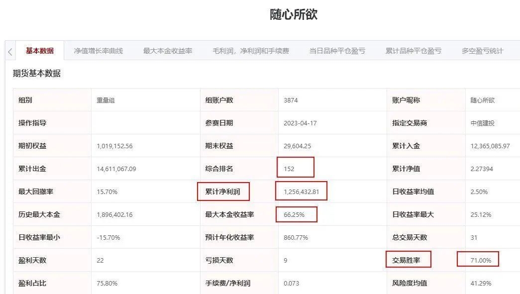 第17届全国期货(期权)实盘交易大赛如火如荼进行中!仅两个多月时间,来自中信建投期货的选手“随心所欲”共盈利125.6万;位列重量组第152名,在期货通赛区处于重量组第三名。 人物介绍 该帐号期初权益101.9