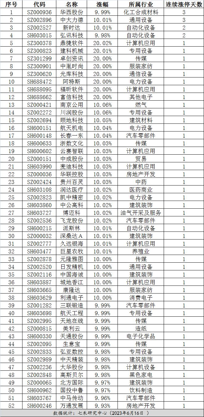 连续涨停0616:华西股份连续3个涨停