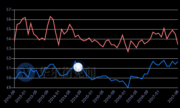 中国8月官方制造业PMI高于预期。31日,国家统计局公布中国8月PMI相关数据。其中,8月制造业PMI为51.7,平年内次高值,高于预期值51.3和前值51.4。此外,中国8月官方非制造业PMI 53.4,创15个月来最低,低于前值 54.5
