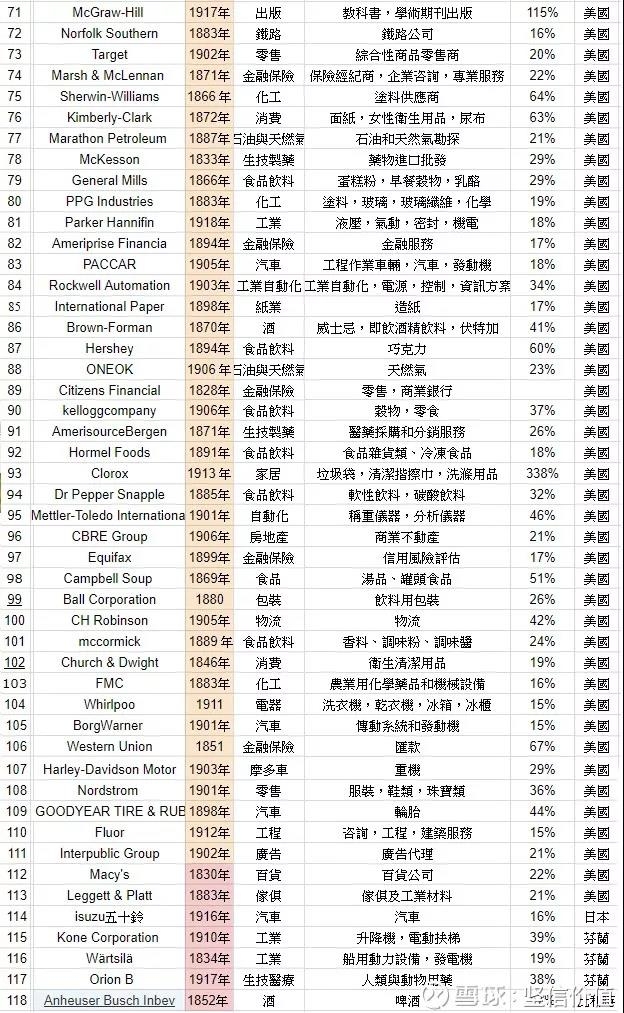 一个企业能够超过百年,可以说是相当不容易,尤其是现在科技业崛起,冲击各行各业,很多行业都消失或积弱不振。除了超越百年以外,选取的公司还要获利不错,不然,活得很久,但获利很差,这样也不行。下面就选取了最