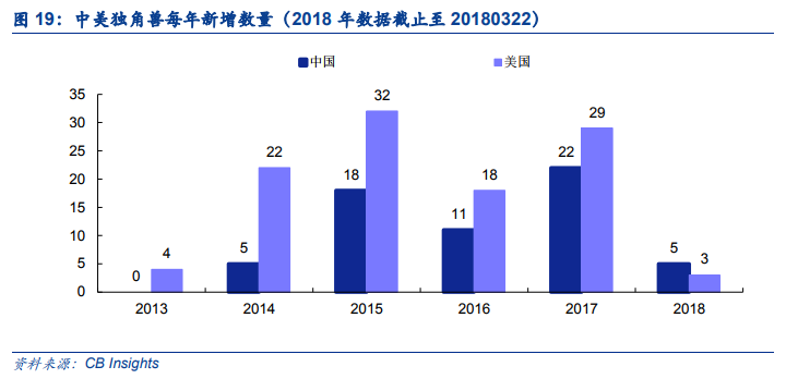 据CB Insights数据,截止2018年3月22日,全球共计236家独角兽公司,累计估值为8040亿美元,分布在23个国家。其中,美国坐拥116家位居榜首(49.15%),中国凭借64家居于亚军(27.12%),二者遥遥领先于其他国家。安信