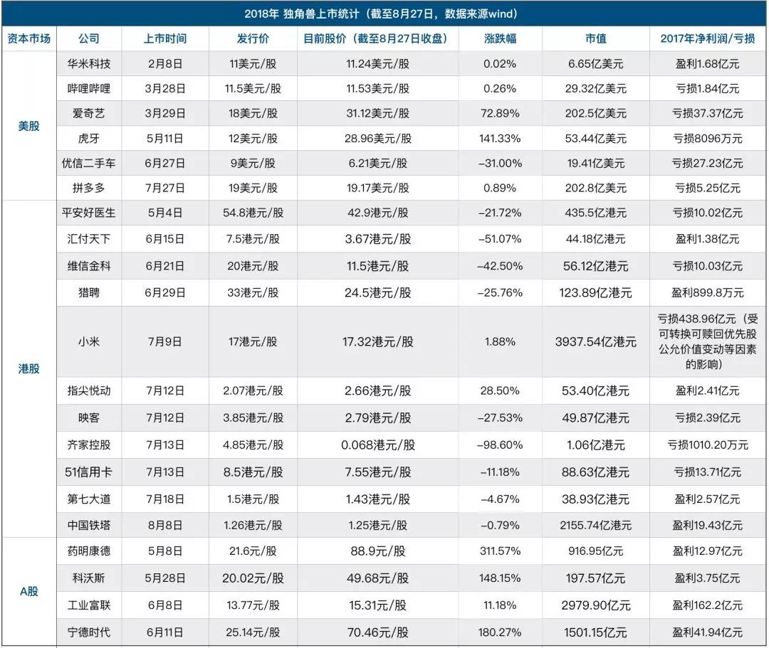 2018年上半年,“独角兽”迎来上市潮。据市界不完全统计,今年以来,截至8月28日,共有21家独角兽企业上市,其中美股6家,港股11家,A股4家。这21家独角兽企业中,截至8月27日已有10家破发,相较于发行价最高跌幅达5