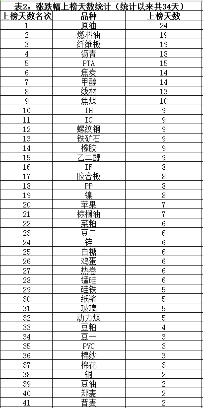 一、内盘期货品种资金沉淀榜1、资金沉淀榜前15名,及内盘商品、股指资金沉淀统计2、资金沉淀榜15名后的品种统计二、内盘期货品种指数涨跌幅榜1、涨跌幅绝对值榜前10名2、涨跌幅绝对值上榜天数统计(只显示排名靠前的