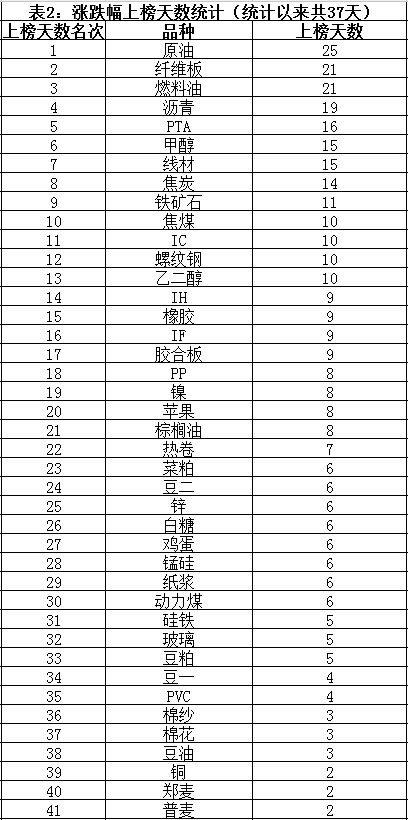 一、内盘期货品种资金沉淀榜1、资金沉淀榜前15名,及内盘商品、股指资金沉淀统计2、资金沉淀榜15名后的品种统计二、内盘期货品种指数涨跌幅榜1、涨跌幅绝对值榜前10名2、涨跌幅绝对值上榜天数统计(只显示排名靠前的