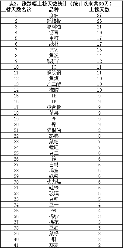 一、内盘期货品种资金沉淀榜1、资金沉淀榜前15名,及内盘商品、股指资金沉淀统计2、资金沉淀榜15名后的品种统计二、内盘期货品种指数涨跌幅榜1、涨跌幅绝对值榜前10名2、涨跌幅绝对值上榜天数统计(只显示排名靠前的