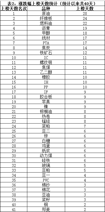一、内盘期货品种资金沉淀榜1、资金沉淀榜前15名,及内盘商品、股指资金沉淀统计2、资金沉淀榜15名后的品种统计二、内盘期货品种指数涨跌幅榜1、涨跌幅绝对值榜前10名2、涨跌幅绝对值上榜天数统计(只显示排名靠前的