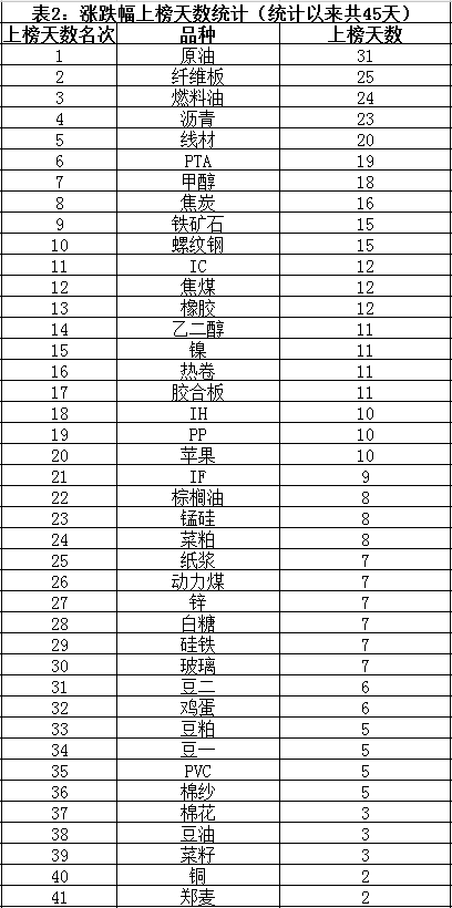 一、内盘期货品种资金沉淀榜1、资金沉淀榜前15名,及内盘商品、股指资金沉淀统计2、资金沉淀榜15名后的品种统计二、内盘期货品种指数涨跌幅榜1、涨跌幅绝对值榜前10名2、涨跌幅绝对值上榜天数统计(只显示排名靠前的