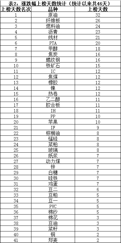 一、内盘期货品种资金沉淀榜1、资金沉淀榜前15名,及内盘商品、股指资金沉淀统计2、资金沉淀榜15名后的品种统计二、内盘期货品种指数涨跌幅榜1、涨跌幅绝对值榜前10名2、涨跌幅绝对值上榜天数统计(只显示排名靠前的