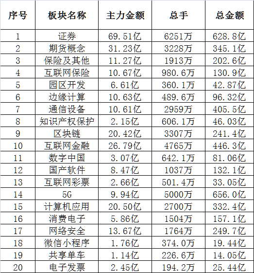1、沪深两市涨幅前20名热点板块:2、沪深两市涨幅前20名热点板块的历史涨跌(统计范围均以交易日计):3、沪深两市涨幅前20名热点板块的资金概况:注:该表统计标的为沪深两市所有相关板块,统计时间为当天下午15:00