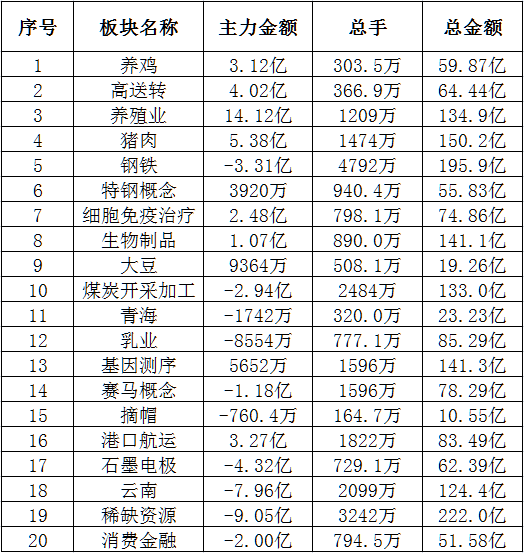 1、沪深两市涨幅前20名热点板块:2、沪深两市涨幅前20名热点板块的历史涨跌(统计范围均以交易日计):3、沪深两市涨幅前20名热点板块的资金概况:注:该表统计标的为沪深两市所有相关板块,统计时间为当天下午15:00