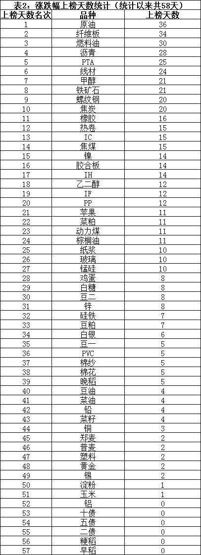 一、内盘期货品种资金沉淀榜1、资金沉淀榜前15名,及内盘商品、股指资金沉淀统计2、资金沉淀榜15名后的品种统计二、内盘期货品种指数涨跌幅榜1、涨跌幅绝对值榜前10名2、涨跌幅绝对值上榜天数统计(只显示排名靠前的
