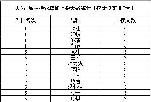 一、内盘期货品种持仓增加幅度前10名统计二、内盘期货品种持仓增加幅度前3名品种持仓分析1.原油指数总结:未公布持仓。2.豆二指数总结:东吴期货净增持豆二多单270手,申银万国期货净增持豆二多单649手,国投安信期