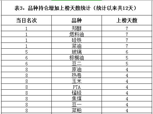 一、内盘期货品种持仓增加幅度前10名统计二、内盘期货品种持仓增加幅度前3名品种持仓分析1.郑醇指数总结:光大期货增持郑醇多单19021手,增持郑醇空单20192手;永安期货净增持郑醇多单9872手;海通期货净增持郑醇多
