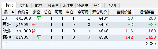 一、开仓总结 1、棕榈油:2019年6月14日,棕榈油指数合约盘中上涨接近近期3根均线(5日、10日、20日均线),之后价格向下收回,此时价格离近期3根均线中的最高均线较近、止损较小,所以6月14日下午收盘前,在14:4