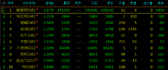 收评:碳酸锂跌近4%,沪锡涨超2%