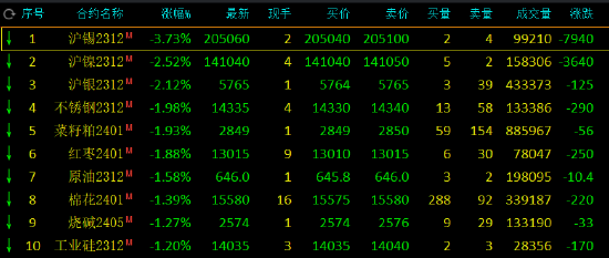 早盘收盘,国内期货主力合约涨跌不一,液化石油气(LPG)涨超2%,铁矿石涨近2%。跌幅方面,沪锡跌超3%,沪镍、沪银跌超2%。国内锡矿库存持续消化,短期不建议过度看空锡价新湖期货点评:本周锡价连日大跌,两日累计