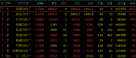 期市开盘:焦煤、焦炭、纯碱涨超3%
