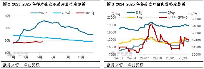 【导语】2024年9月份以来,国内鲜品及冻品猪肉价格皆呈现跌后趋稳的态势,但因国产冻品库存较小,支撑价格跌幅偏小。随着鲜冻价差不断收窄,至2025年5月鲜品对冻品的替代效应不断增强,冻品市场成交寡淡。后期来看,