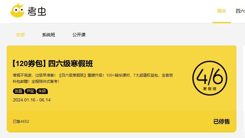 2月22日,大学生备考服务平台考虫被曝倒闭,并冲上微博热搜。 在考虫的官网页面,2024年1月开出的数个课程均已停售。2月22日下午,澎湃新闻记者询问考虫人工客
