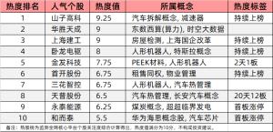 今日十大热股:山子高科热度9.25领衔,华胜天成算力概念爆发,上海建工热度不减,天普股份12连板持续遭爆炒