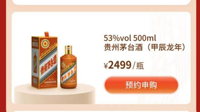 1月6日19:00,甲辰龙年贵州茅台酒(简称“龙茅”)在i茅台数字营销平台(简称“i茅台”)正式开启申购,市场指导价为2499元/瓶。中国证券报记者注意到,目前