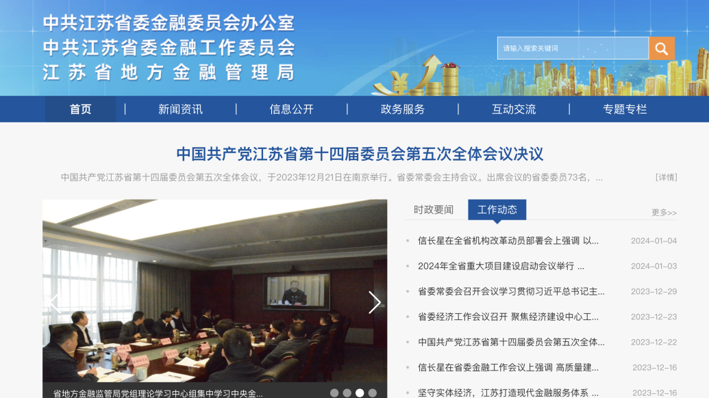 1月8日,澎湃新闻注意到,原江苏省地方金融监管局官网有了更新,江苏省委金融委、江苏省委金融工委和江苏省地方金融管理局正式亮相。官网显示,该网站主办单位是“中共江