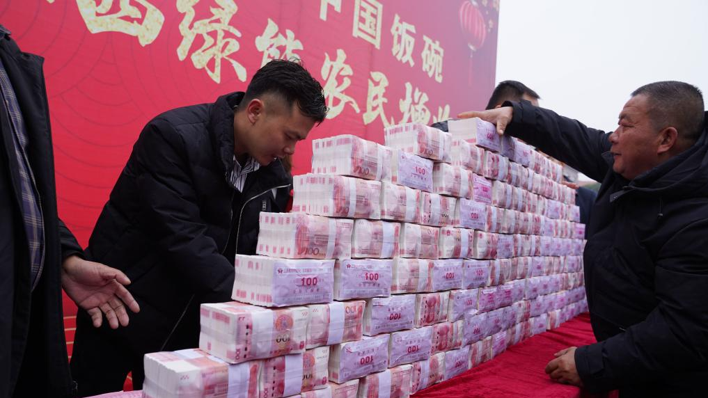 1月8日,江西省南昌市安义县的种粮大户凌继河给种粮能手和员工发放1169万元现金作为年终奖,一对种粮能手夫妻年收入可达12到30余万元。这是凌继河连续十三年给农