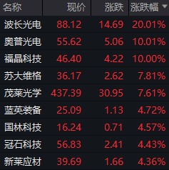 近日,A股光刻机板块表现活跃,波长光电、凯美特气、苏大维格、赛微电子、炬光科技、茂莱光学领涨,题材产业链企业整理:波长光电(301421.SZ)最新股价:88.12元涨幅:20.01%涨停时间:09:35公司是国内精密光学元件