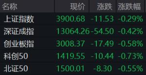 沪指开盘跌0.29%,报3900.68点,深成指跌0.42%,报13064.26点,创业板指跌0.58%,报3008.37点,科创50指数跌0.73%,报1419.55点。集合竞价阶段沪深两市合计成交额161.27亿元,全市场近3000家个股下跌。国家发改委等