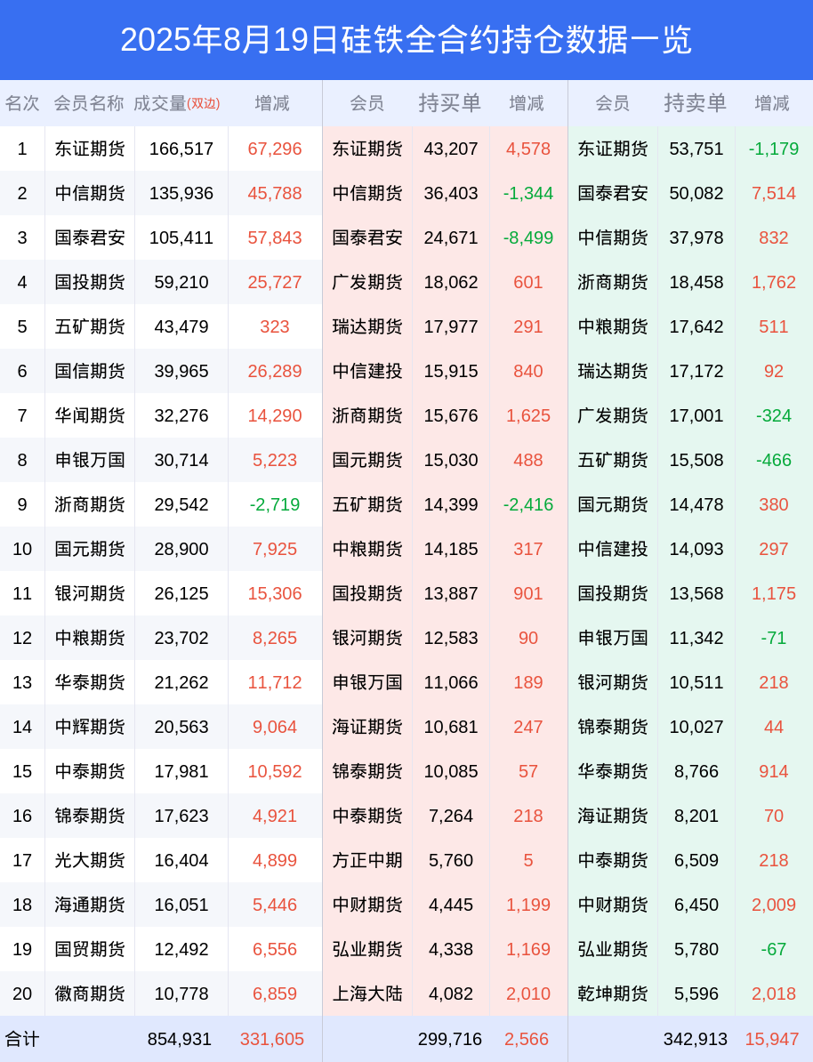 新浪期货 根据交易所数据,截至8月19日收盘主力合约硅铁2511,涨跌-3.53%,成交量37.26万手,持仓数据显示前20席位呈现净空,差额头寸为5929手。