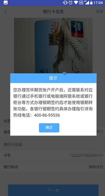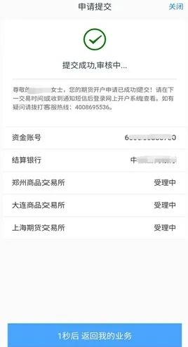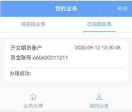 如开户成功,在该界面“已完成业务”中可查询到开户成功通知,同时开户当日手机收到短信提示。