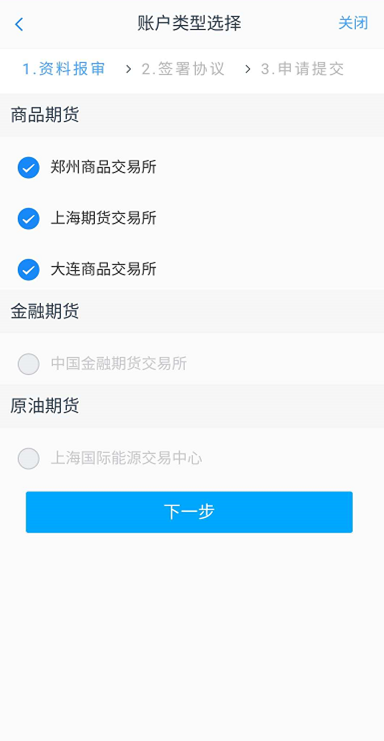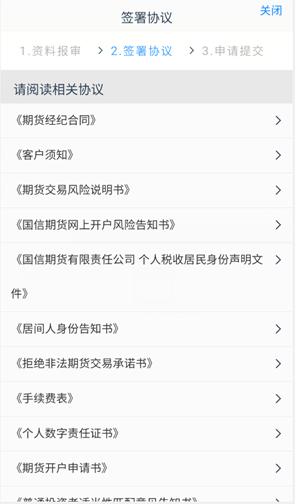 阅读期货经纪合同、客户须知、期货交易风险说明书等相关协议,阅读完所有协议并勾选屏幕下方的“我已阅读并同意”,才可点击下一步。(此处为强制阅读,必须完全阅读才能进行下一步)。