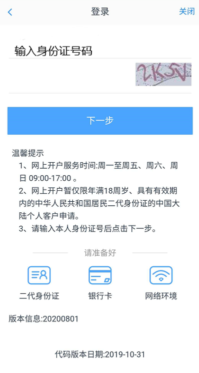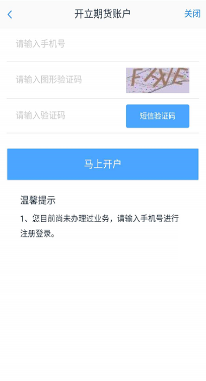 *网上开户服务时间:周一至周五 09:00-17:00*确保手机的摄像头、麦克风、扬声器等权限都已打开;选择“开立期货账户”,点击同意,根据页面提示输入身份证号码和验证码,并通过手机短信进行验证。