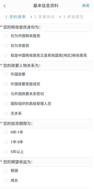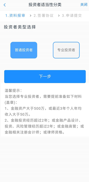 *专业投资者:填写相关信息并上传资产证明、投资经历等相关申请材料。