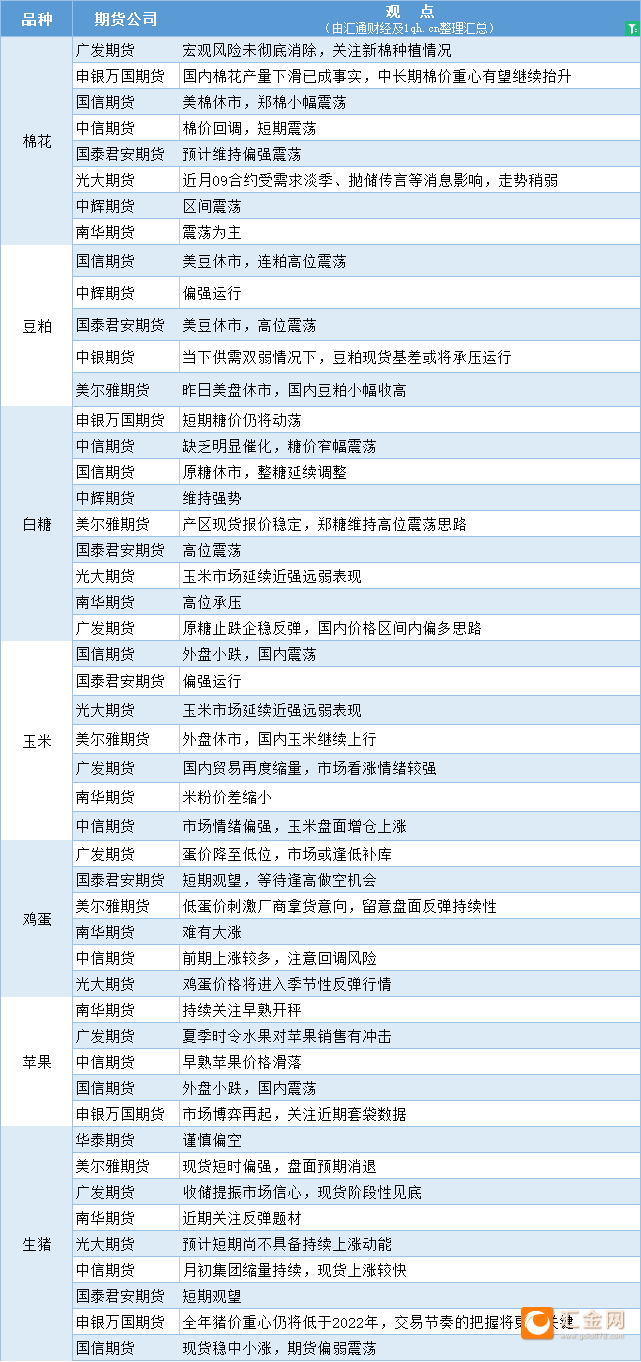 期货公司观点汇总一张图:7月5日农产品(棉花、豆粕、白糖、玉米、鸡蛋、生猪等)